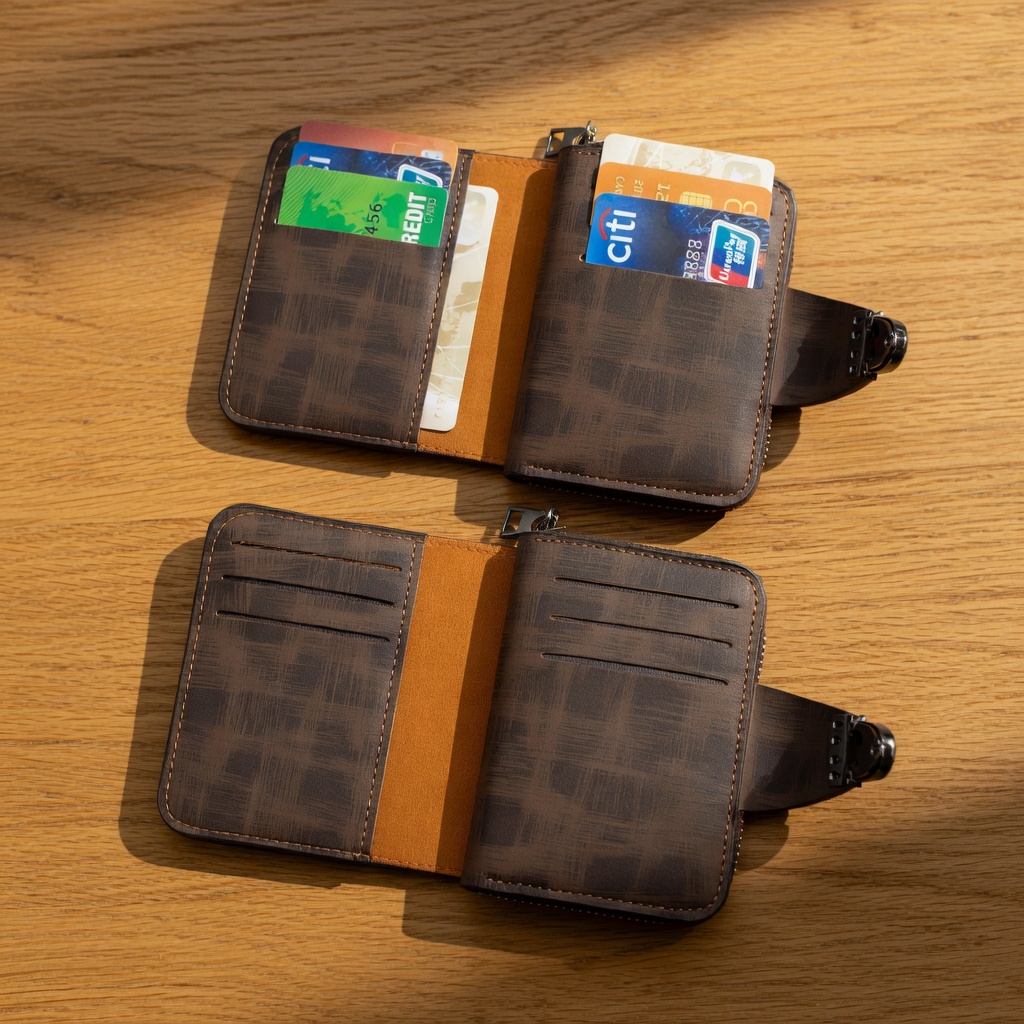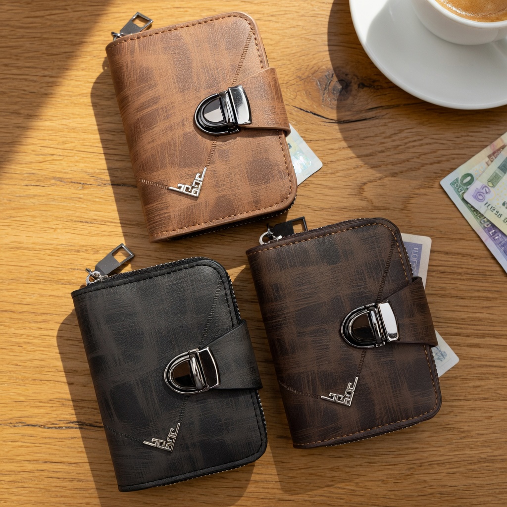 Stand out with the KINGDUSHI Urban Textured Wallet. Featuring a unique cross-hatched pattern and decorative chrome accents, this wallet is designed for the fashion-forward man who wants a secure, zip-around closure with a designer aesthetic.
