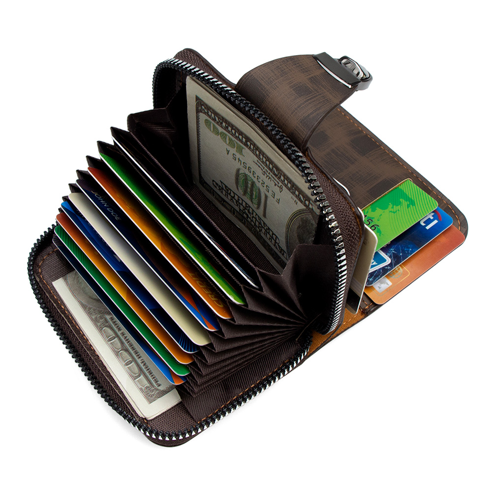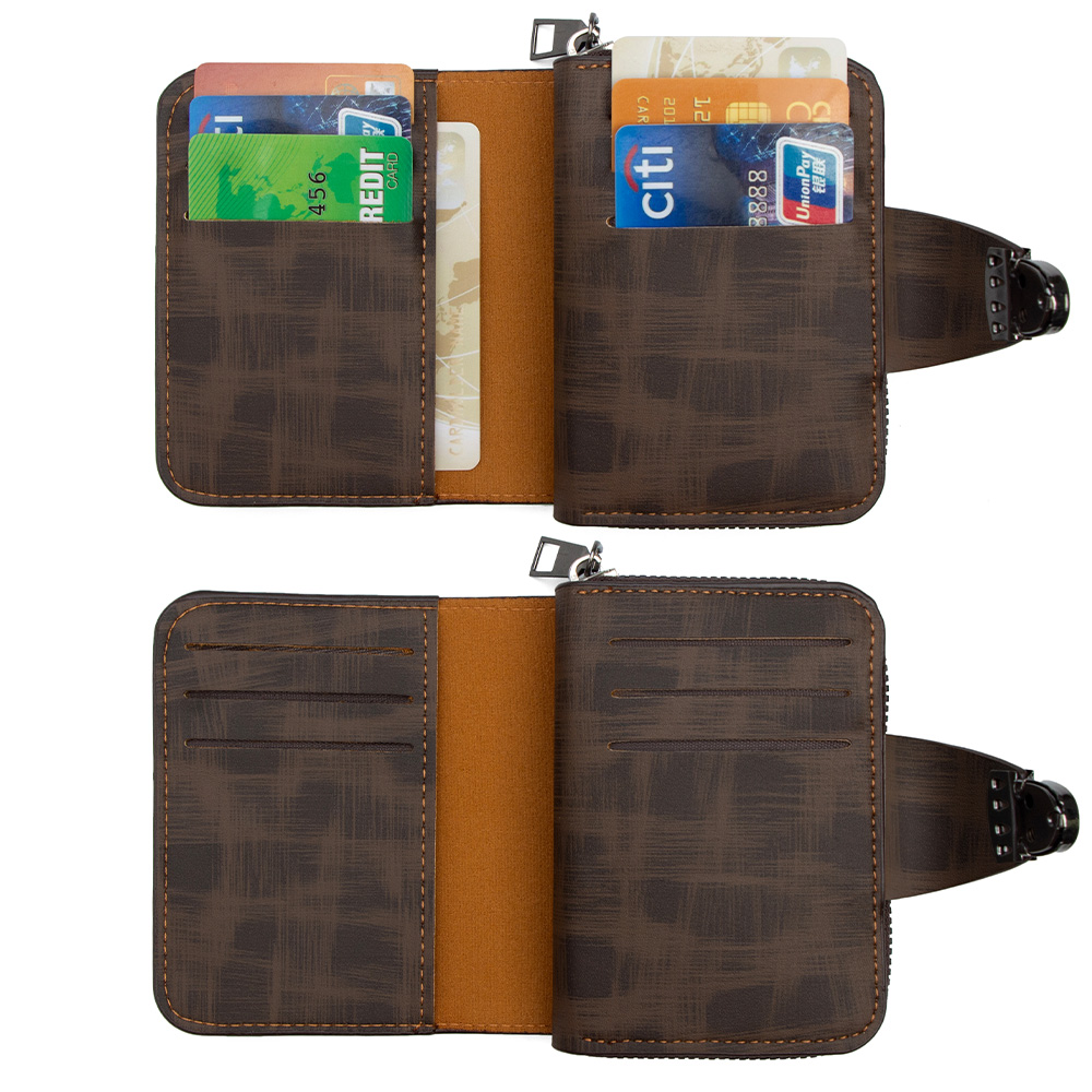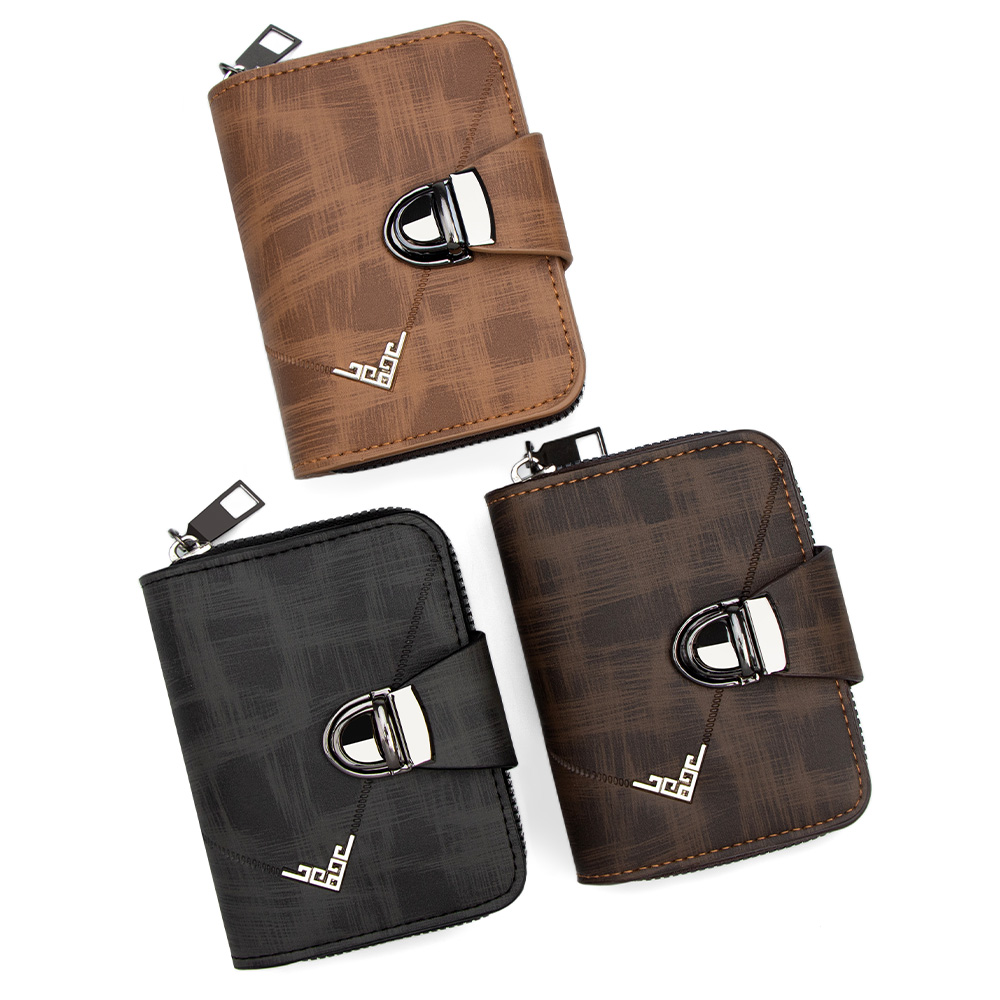 Stand out with the KINGDUSHI Urban Textured Wallet. Featuring a unique cross-hatched pattern and decorative chrome accents, this wallet is designed for the fashion-forward man who wants a secure, zip-around closure with a designer aesthetic.